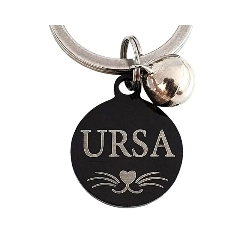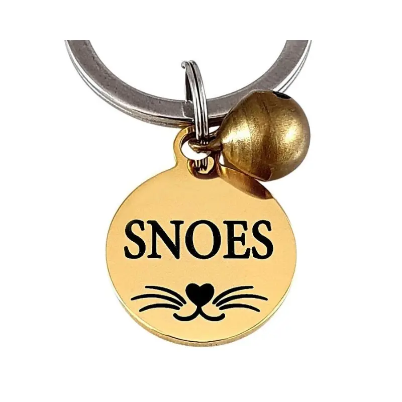 Op de voorkant kan je een naam en telefoonnummer en een snorretje laten graveren van je kat of hond. En naar wens op de achterkant je adres en chipnummer.