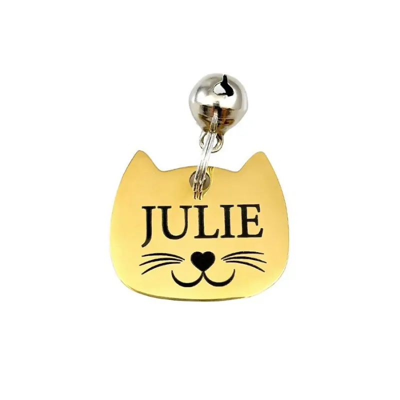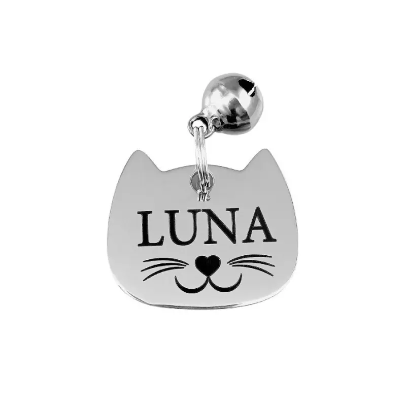 Elke kat heeft deze leuke gepersonaliseerde katten penning met naam, telefoonummer en bel in de vorm van een poes van titanium nodig. Omdat het belangrijk is dat je kat herkenbaar is. Laat daarom je eigen tekst of informatie op deze mooie katten penning met naam, adres en telefoonnummer graveren, hang deze aan de halsband van je kat zodat je kat altijd veilig de weg terug vind.