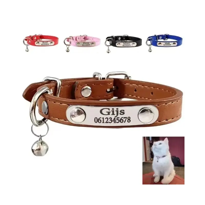Kattenhalsband met naam en telefoonnummer bestellen en belletje