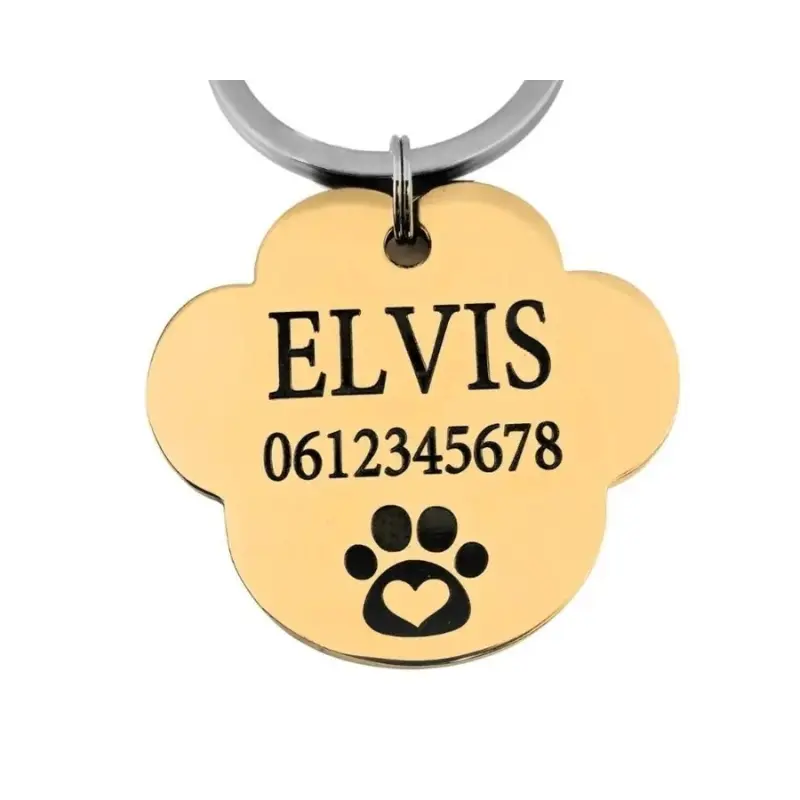 Bij al onze dierenpenningen voor je hond of kat is het mogelijk om de voor en achterkant te laten graveren. Je kan zelf kiezen welke gegevens je op de voor of achterkant wenst. Bijvoorbeeld de naam van je kat of hond op de voorkant en adresgegevens op de achterkant. Hondenpenning graveren op de achterkant is gratis.